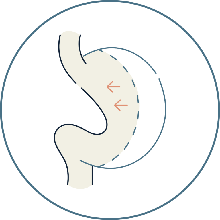 La manga gástrica es una cirugía bariátrica en la que reducimos el tamaño del estómago para que adopte una forma tubular, similar a una “manga”. En términos simples: el estómago queda con menor capacidad, lo que ayuda a que la persona se sienta satisfecha con porciones más pequeñas. Además, no es solo “menos espacio”: al modificar la anatomía gástrica también se producen cambios hormonales y de señalización del apetito que influyen en la regulación del hambre y la saciedad.